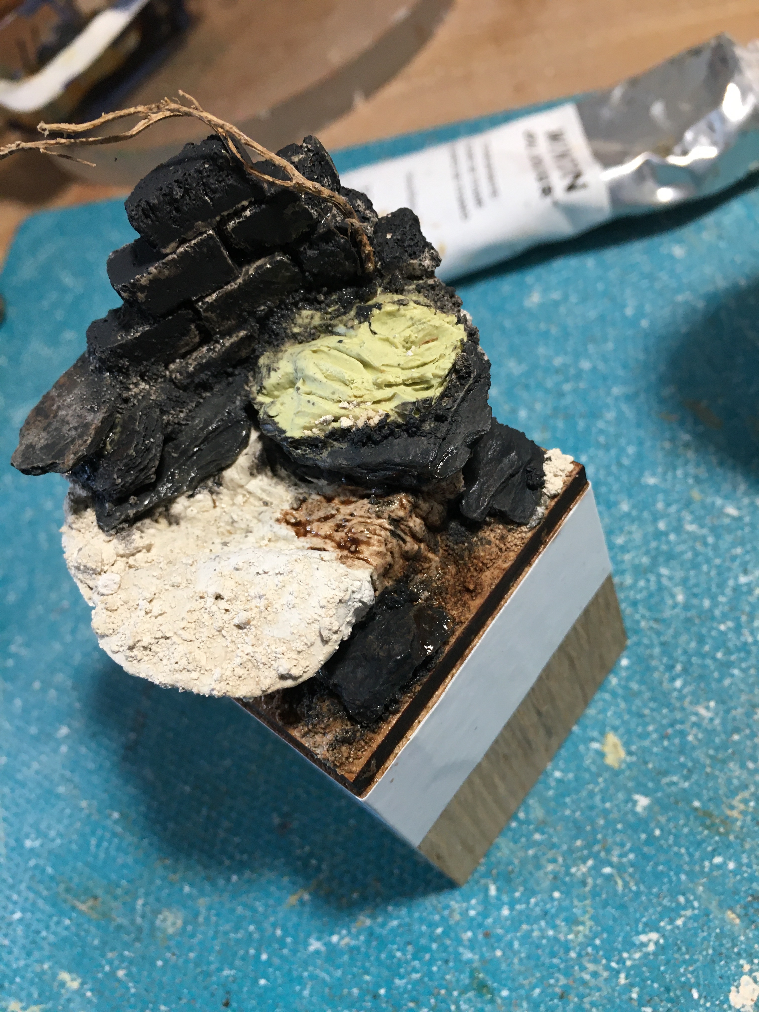 The figure lent itself to some freehand so I figured I’d do as much as I could. The check shirt took a little while but seemed appropriate as did the “BJ” on his hat. A heart tattoo on his left arm seemed touching and and the jug needed a label which was hard to actually photograph. I also added a symbol to his bib which was meant to look like a planet with rings around it but it is so bloody small!